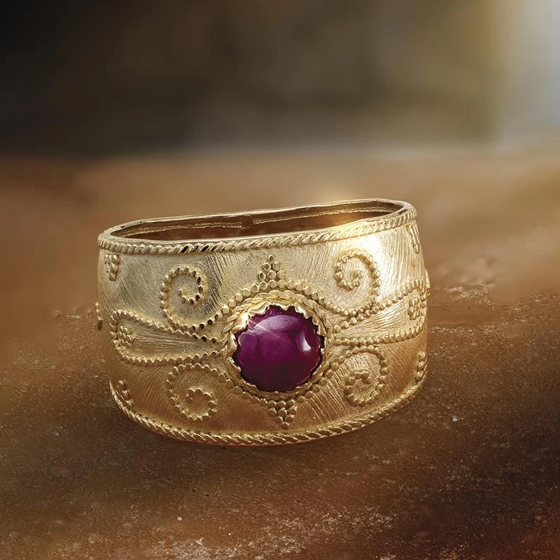 We’ve included polished cabochons of each in our Queenmaker Ring Collection, featuring two complementary rings forged of solid 14k yellow gold with intricate raised relief. Made in Italy, a country renowned for its legendary metalwork, these are bold statement pieces designed to awe and inspire. Some dainty rings are fit for a princess. These regal riches are crafted for a queen — so you can show yours she’s the ruler of your heart.