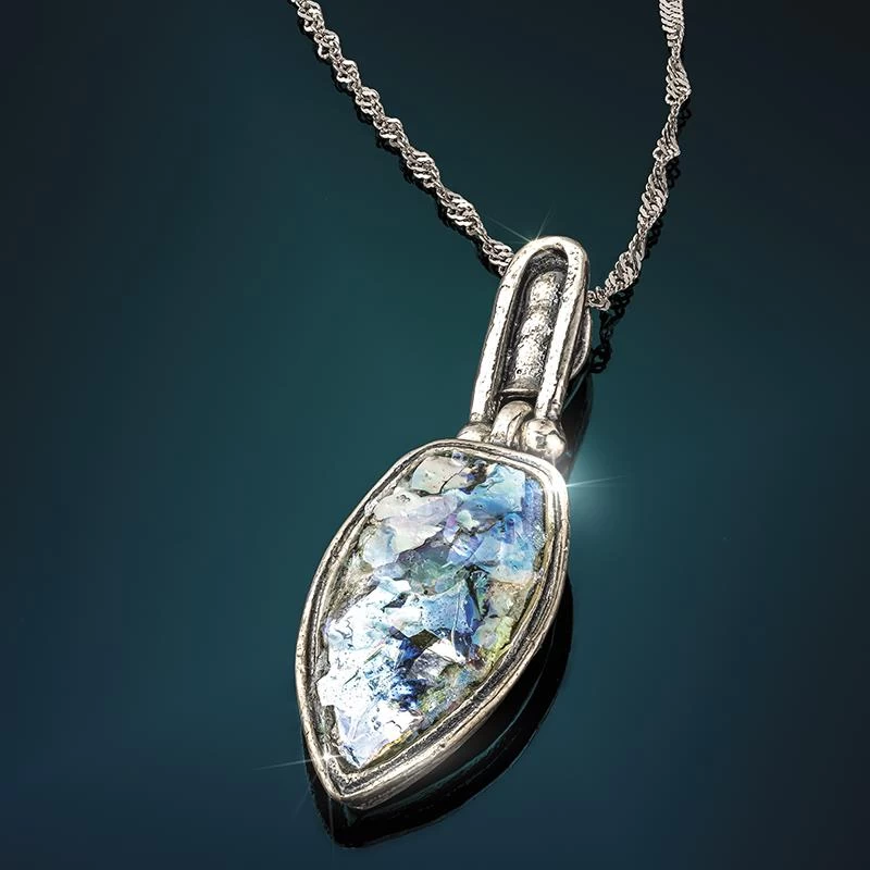 The Roman Empire innovated glassware, introducing glassblowing to the world on a massive scale. Simply put, the skill, beauty and craftsmanship of the Roman Empire was unmatched anywhere in the world. Now you can claim your own piece of the Roman Empire with our Ancient Tribune Roman Glass Collection. At an archaeological excavation in modern-day Israel, we’ve uncovered Roman glass as old as 63 B.C. that began its life as a temple vessel, water jug or simple household object. This glass has been transformed by nature and shaped by a skilled craftsman into something entirely new. The Ancient Tribune Roman Glass Collection is an exceptional work of art showcasing iridescent Roman glass nestled in .925 sterling silver.