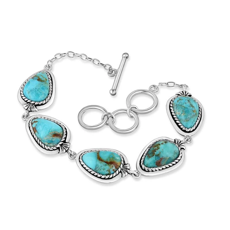 Once a thriving industry, many Southwest mines have run dry and are now closed. We found a limited supply of turquoise from Arizona and snatched it up for our Arizona Kingman Bracelet. Inspired by the work of those ancient craftsmen and designed to showcase this exceptional blue stone, each stabilized vibrant cabochon features a unique, one-of-a-kind matrix surrounded in Bali metalwork.