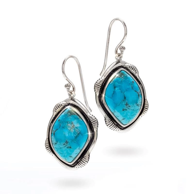 The result are these earrings that feature XX carats of turquoise in a fancy cut. Surrounded with an oxidized finish with a Southwestern motif, the Arizona Turquoise Earrings are the next best thing to visiting the Grand Canyon State.
