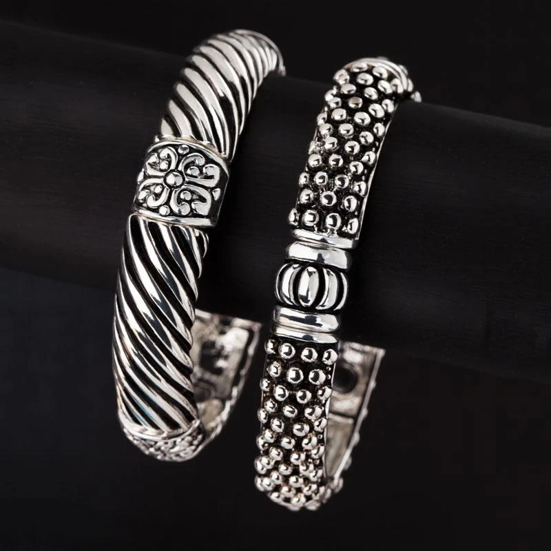 Our Bali-Style Bangles have all the intricate metalwork and substance of bracelets from a 5th Avenue shop. What they don’t have is the big markup. These antiqued-finished bangles stretch to provide a comfortable fit. Wear one at a time, or stack them like a bona fide fashionista. Either way, you’ve got a beautiful designer piece, without the big designer price.