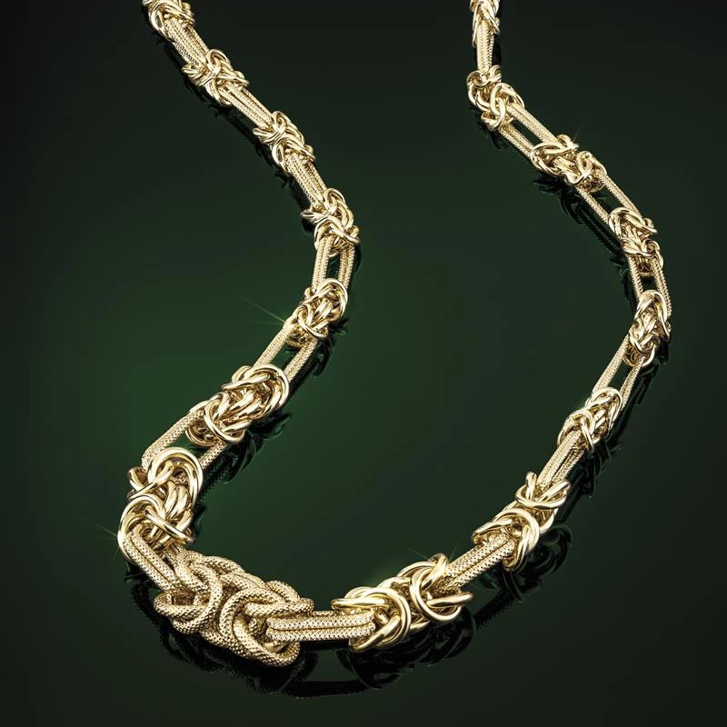 Authentic Byzantine jewelry was created during the Byzantine Empire, from the fourth century AD to approximately the mid-1400s. And, while the legendary beauty of Byzantine metalwork is undeniable, adding a few modern touches elevates it even more. To achieve this merger of past and present, we went to Italy’s epicenter of metalwork — Arezzo. There we sought out the best artisans to ever melt precious metals. What you see here is a striking blend of age-old Etruscan metalsmithing techniques with innovative design. In the Bizantina Moderno Collection, Byzantine links blend with sleek cable links, alternating both high polished and textured finishes. The result is stunning… classic with an edge.