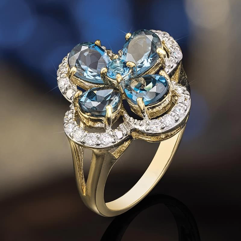 But our current obsession is with another blues rock star: London blue topaz. Richer and more valuable than its Swiss counterpart, London blue topaz is famous for its inky dark shade and is often mistaken for sapphire. Here it’s in peak performance shape in the British Blues Topaz Ring, electric jewelry that features London blue topaz ringed in our Ultimate Diamond Alternative®, DiamondAura®, and set in yellow gold-finished .925 sterling silver. With a chic four-leaf clover-inspired design popularized by one of the top European fashion houses, this jewelry rocks a mod look, making it the perfect gift for the woman who knows a hit when she sees it — or who simply can’t resist the deep, decadent hue of London blue topaz. So whether you call it classic rock or the British blues, this topaz jewelry is all that and more.