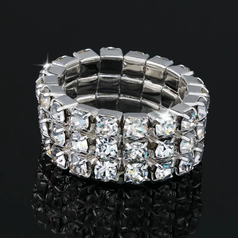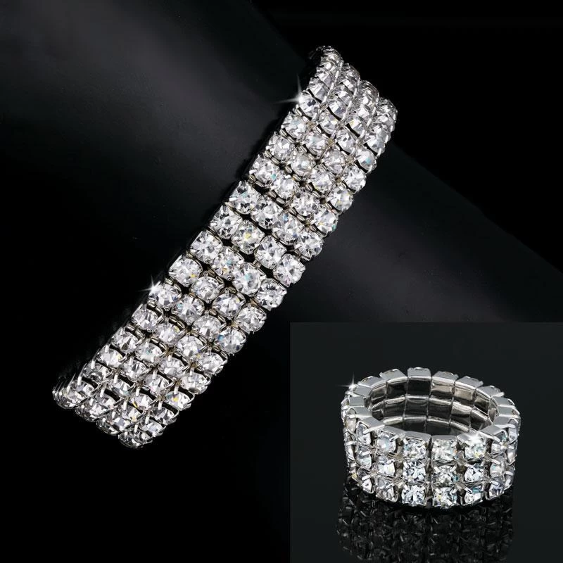 One-hundred thirty-two Austrian crystals form four rows of shimmer on the bracelet and 54 of the same scintillating crystals give you three rows of sparkle on the ring. With the effortless elegance of stretch to fit, you can be dressed to dazzle in no time. Whether you’re off to a black tie event or simply sharing a candlelit dinner for two, arm yourself in sparkle and be the life of the party.