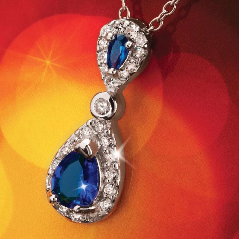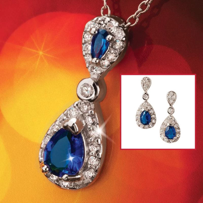 These knockouts are sure to be instant classics. The Cheswick Pendant & Earrings Set is luxuriously set in gleaming .925 sterling silver with brilliant blue teardrops of the Ultimate Diamond Alternative™, DiamondAura®.