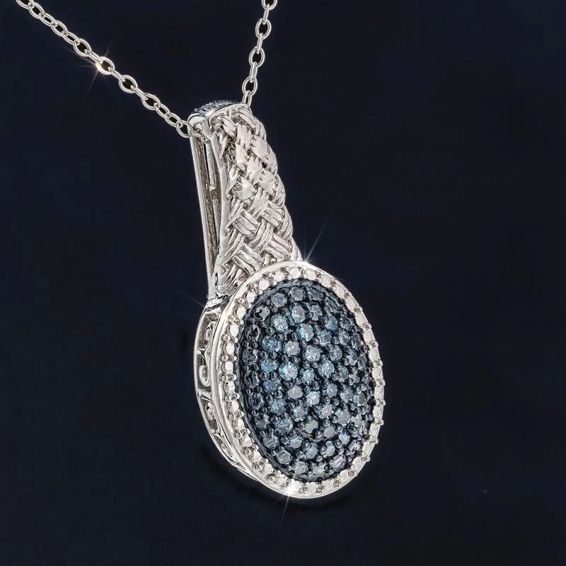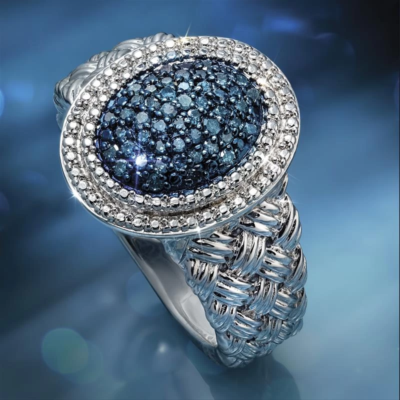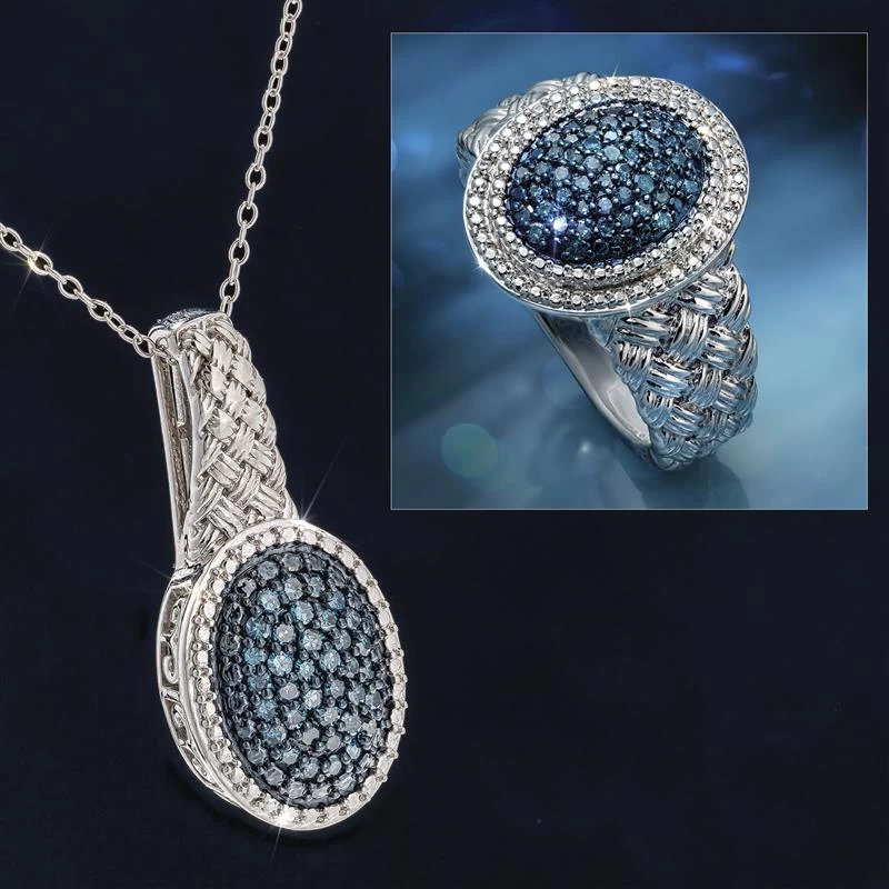 Most people have never seen a blue diamond. That’s because these natural blue beauties are incredibly rare, comprising just 0.02% of the world’s diamonds. For most people, their best chance of seeing a blue diamond up close is in a museum or at an auction. The Dreamweaver Blue Diamond Ring and Necklace features 84 rare blue diamonds pavé set in elegant ovals. Crafted of rhodium-finished sterling silver, the exquisite woven design makes this jewelry truly unique.