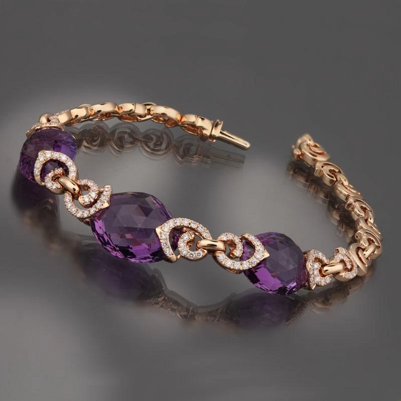 Your special lady may not wear a crown, but there’s no doubt she’s your princess. Our Empress Amethyst & Diamond Bracelet is more than fit for a queen. Almost 28 total carats of the royal purple gem create a trio of stunning briolette-cut stones connected by almost a full carat of sparkling white diamonds. A warm and lustrous rose gold finish is the crowning touch.