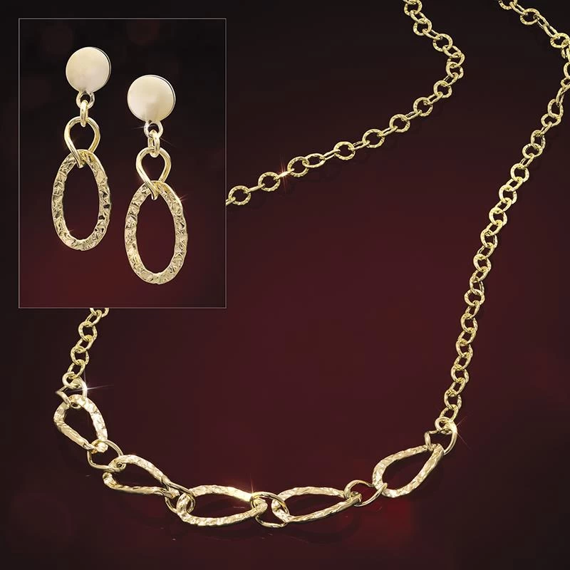 Nowhere is this double threat more evident than in the Love Links Gold Necklace and Earrings, luxurious creations from Italy. Crafted of 14k yellow gold with a timeless hammered-texture finish, this jewelry is an instant classic — it’s also an exceptional deal! If you know a woman of unmatched substance, let this jewelry symbolize your love.