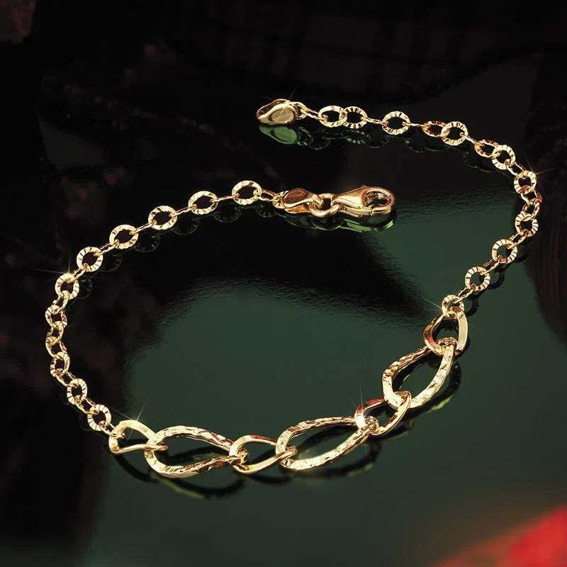 Nowhere is this triple threat more evident than in the Love Links Gold Bracelet, a luxurious creation from Italy. Crafted of 14k yellow gold with a timeless hammered-texture finish, this bracelet is an instant classic and an exceptional deal! Three outsize links and four midsize links take center stage, exemplifying the elegant design in the rest of the chain. If you know a woman who exudes both style and substance, let this bracelet symbolize your love.