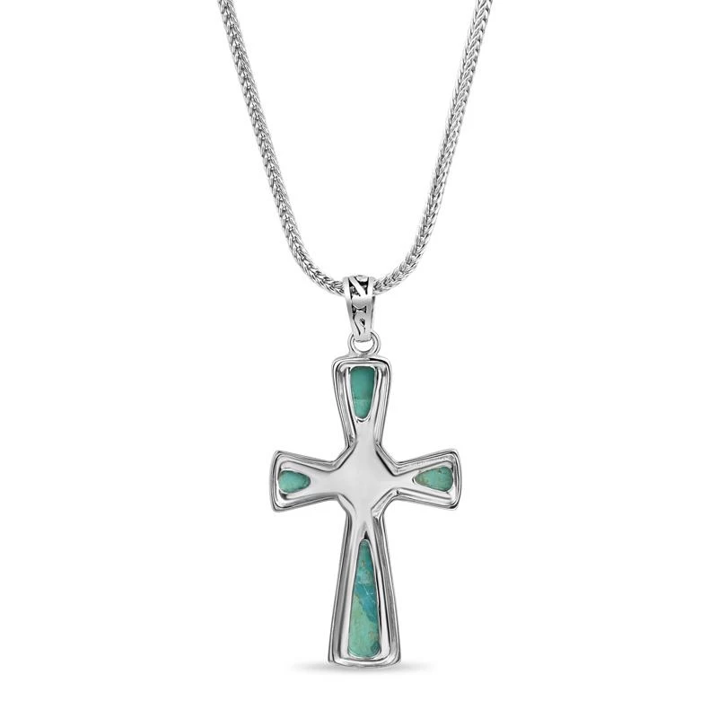 We celebrate these early evangelists with the Mission Turquoise Cross Pendant. The faithful Christian cross design feature 3 2/5 total carats of genuine turquoise that was mined in the same region as many of the finest missions— the American Southwest.
