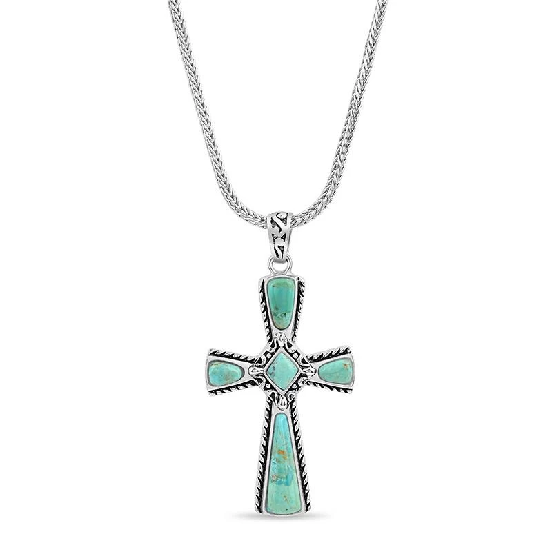 Wear the Mission Turquoise Cross Pendant to honor the missionaries who came before, and to continue their early work by proudly representing your faith today.