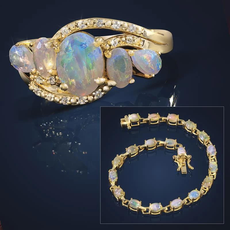 A recent discovery, Ethiopian opals are known for their extraordinary play of color resulting in a dancing rainbow in every stone. You’ll dance too when you behold the Opal Opulence Ring and Bracelet and realize just how far your hard-earned buck can take you!