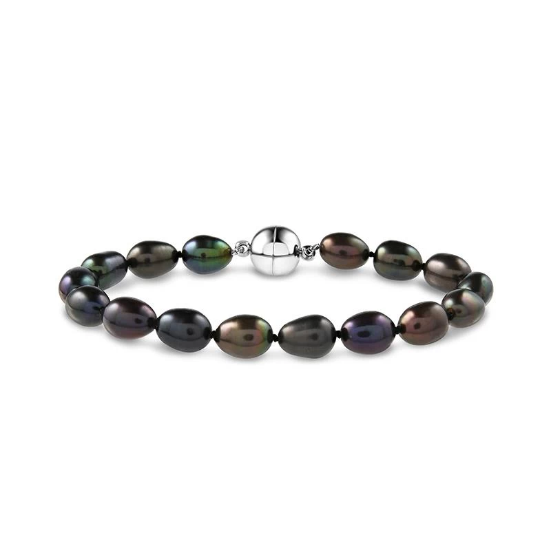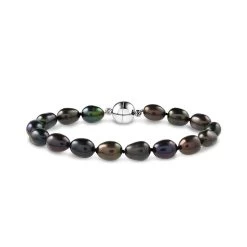 In our Peacock Pearl Collection, we’ve created a bracelet that places genuine cultured freshwater pearls offset by .925 sterling silver.