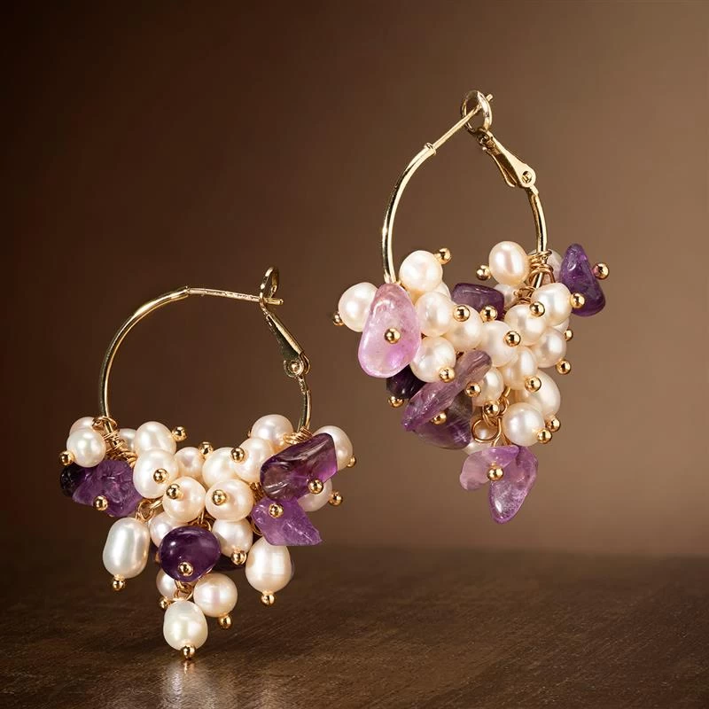 Capture a little magic wherever you are with the Purple Sands Earrings — stunning jewelry inspired by that hidden beach. On these elegant earrings, asymmetrical pieces of purple amethyst mingle with freshwater pearls in delicate yellow gold-finished settings. Because both purple and pearls are hotter than ever this year, their collaboration is as serendipitous as the phenomenon that inspired it.