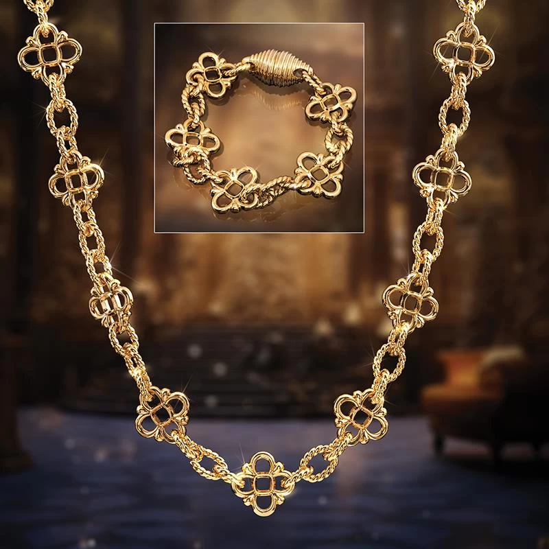 The latter is what inspired our Quatrefoil Necklace and Bracelet, whose intricate yellow gold-finished chains call to mind the work of Renaissance-era artists and the gilded splendor of Florence. Made in Italy by designers who know their metalwork, these unique pieces are a renaissance all on their own.
