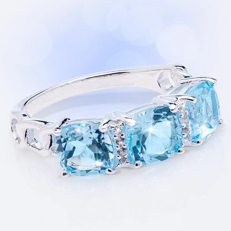 This elegant ring features 2 1/2 carats of ethereal sky blue topaz in three perfectly-faceted cushion cut gemstones. And, the .925 sterling silver setting is finished in tarnish-resistant rhodium for added durability and superior shine. You could spend nearly a $1,000 on a sterling silver ring set with a blue topaz stone. But, with Stauer in your corner, the sky’s the limit for affording the extraordinary. At this price, you can treat her to the Sky Blue Topaz Ring set in .925 sterling silver and save your money and your love life all at the same time.