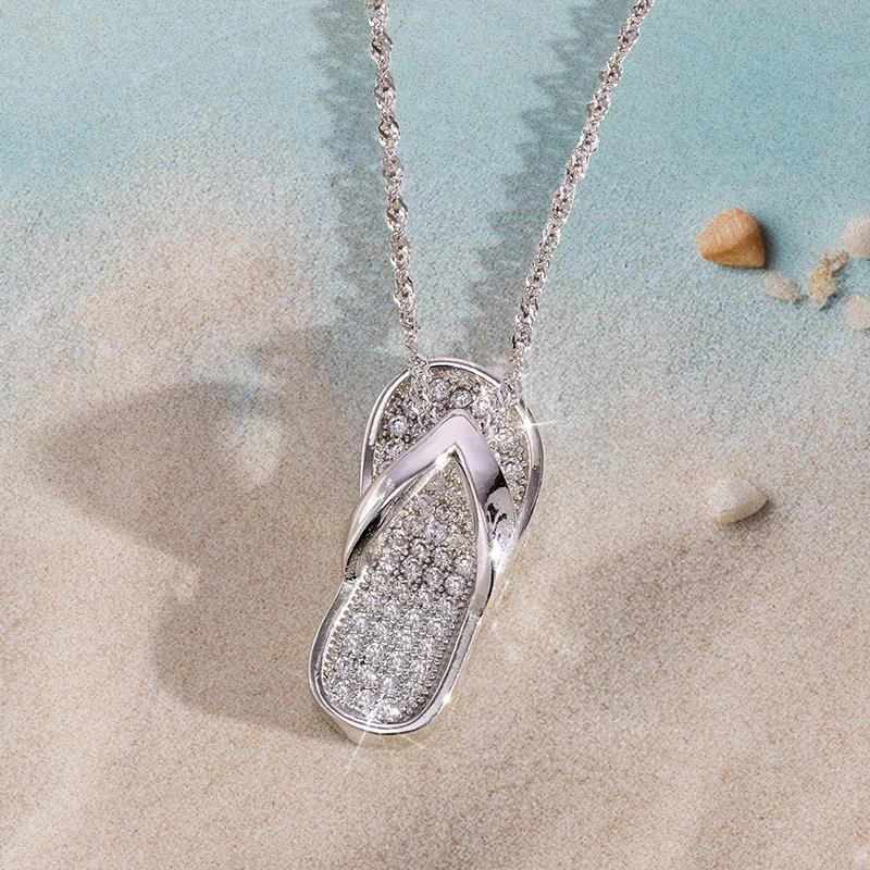 When it comes to getting away from it all, there’s no place quite like the beach. There’s a breeze in the air, sand between your toes, and the gentle sound of the surf lapping at shore in front of you. Catching up on a little R&R is exactly the feeling we’re aiming for with our Summertime Special Flip Flop Pendant. This playful pendant sings the happy song of summer.