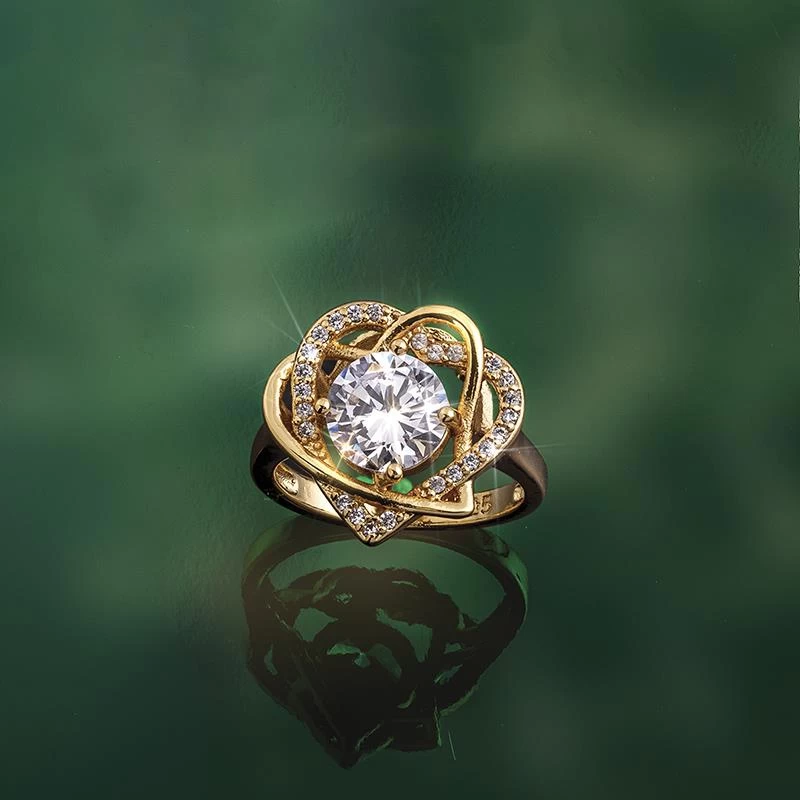 The moment you first met, you couldn’t take your eyes off her. You knew she had to be yours. And no matter what life throws at the two of you, she always will be. Celebrate your endless love with the Two Hearts Collection, a yellow gold-finished bracelet, necklace, ring and earring set that says more than words ever could. This motif weaves together two hearts in a novel way for a look that’s sure to set her heart ablaze.